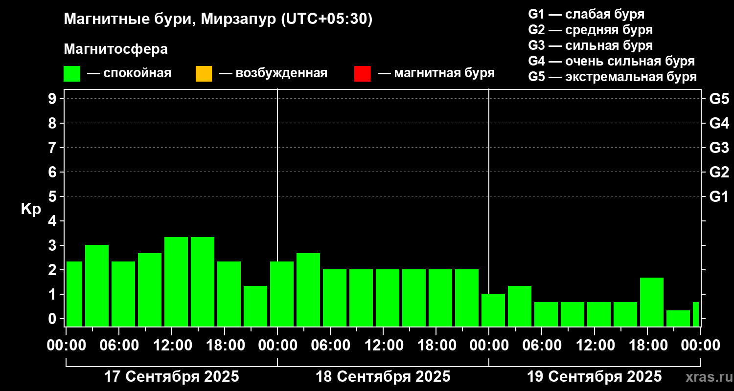 Магнитные бури в Мирзапуре 19 сентября 2025 года