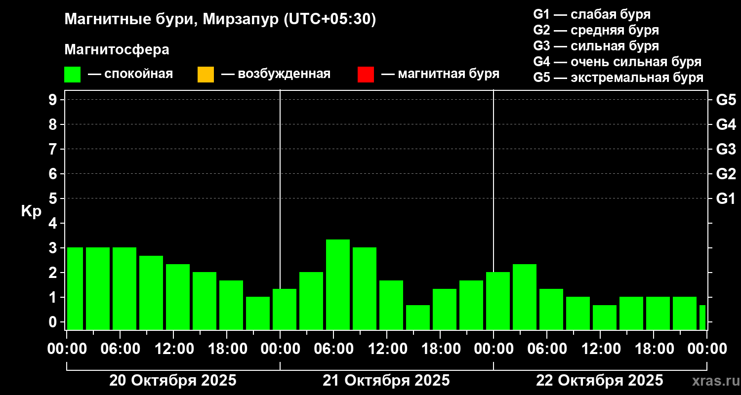Магнитные бури в Мирзапуре 22 октября 2025 года