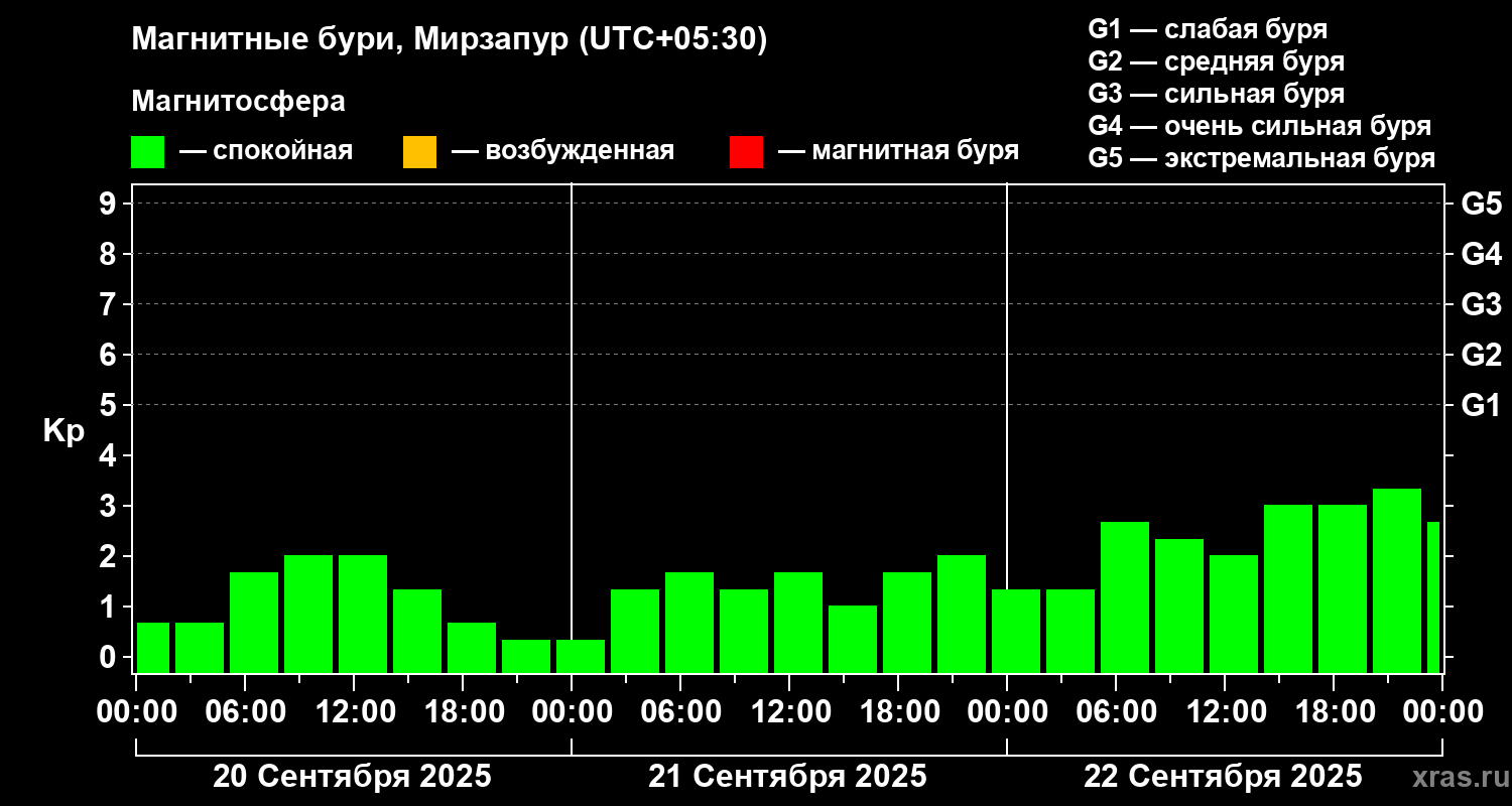 Магнитные бури в Мирзапуре 22 сентября 2025 года