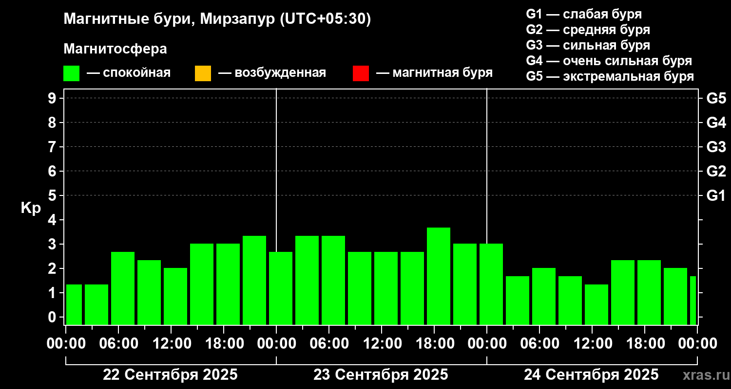 Магнитные бури в Мирзапуре 24 сентября 2025 года