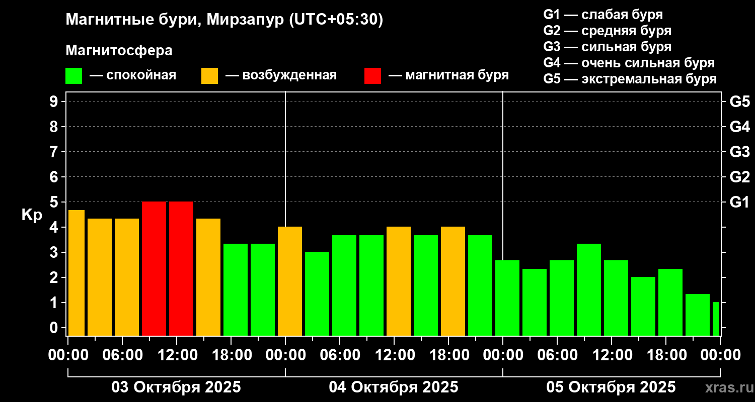 Магнитные бури в Мирзапуре — 5 октября 2025 года