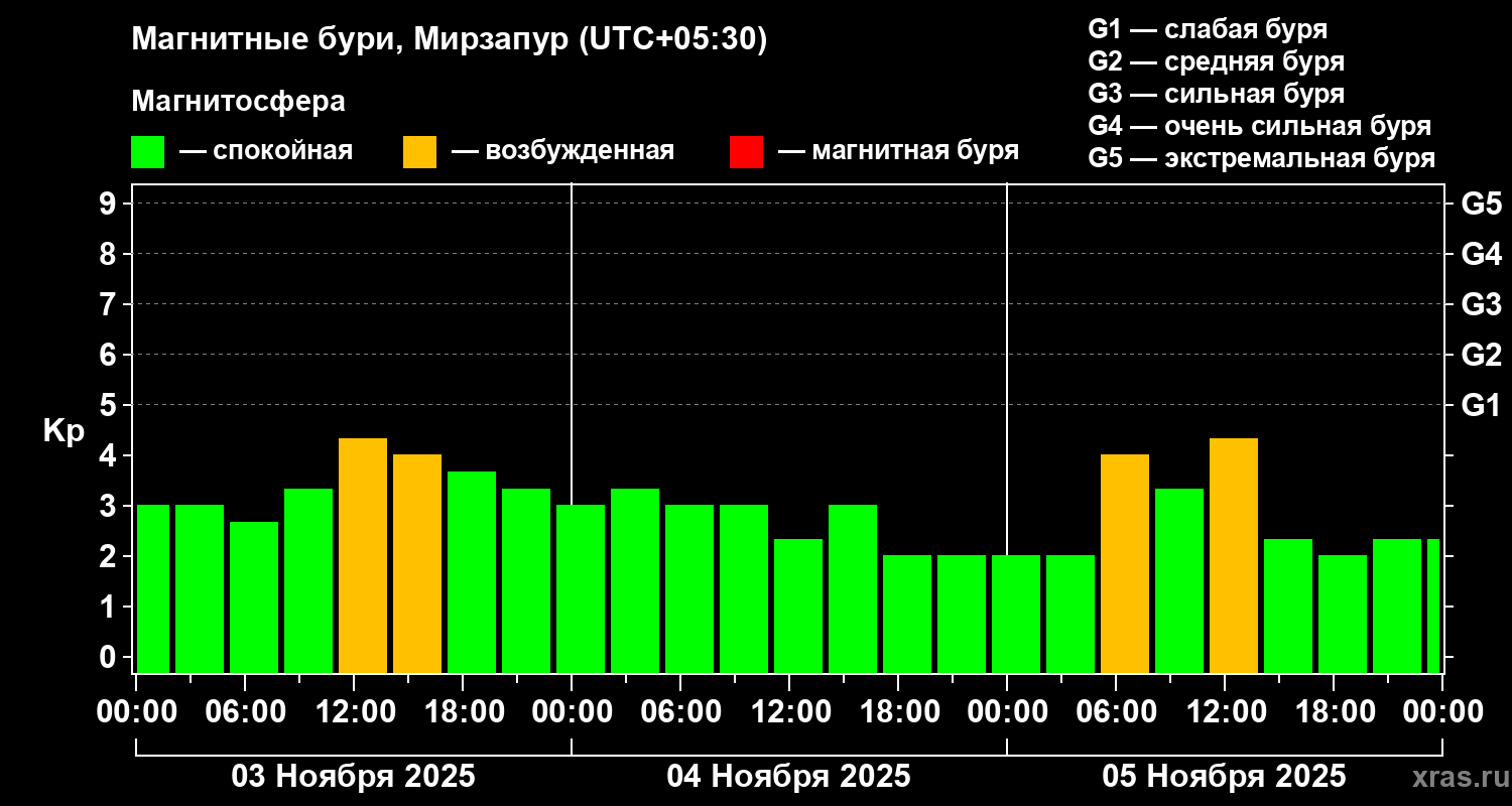Магнитные бури в Мирзапуре — 5 ноября 2025 года