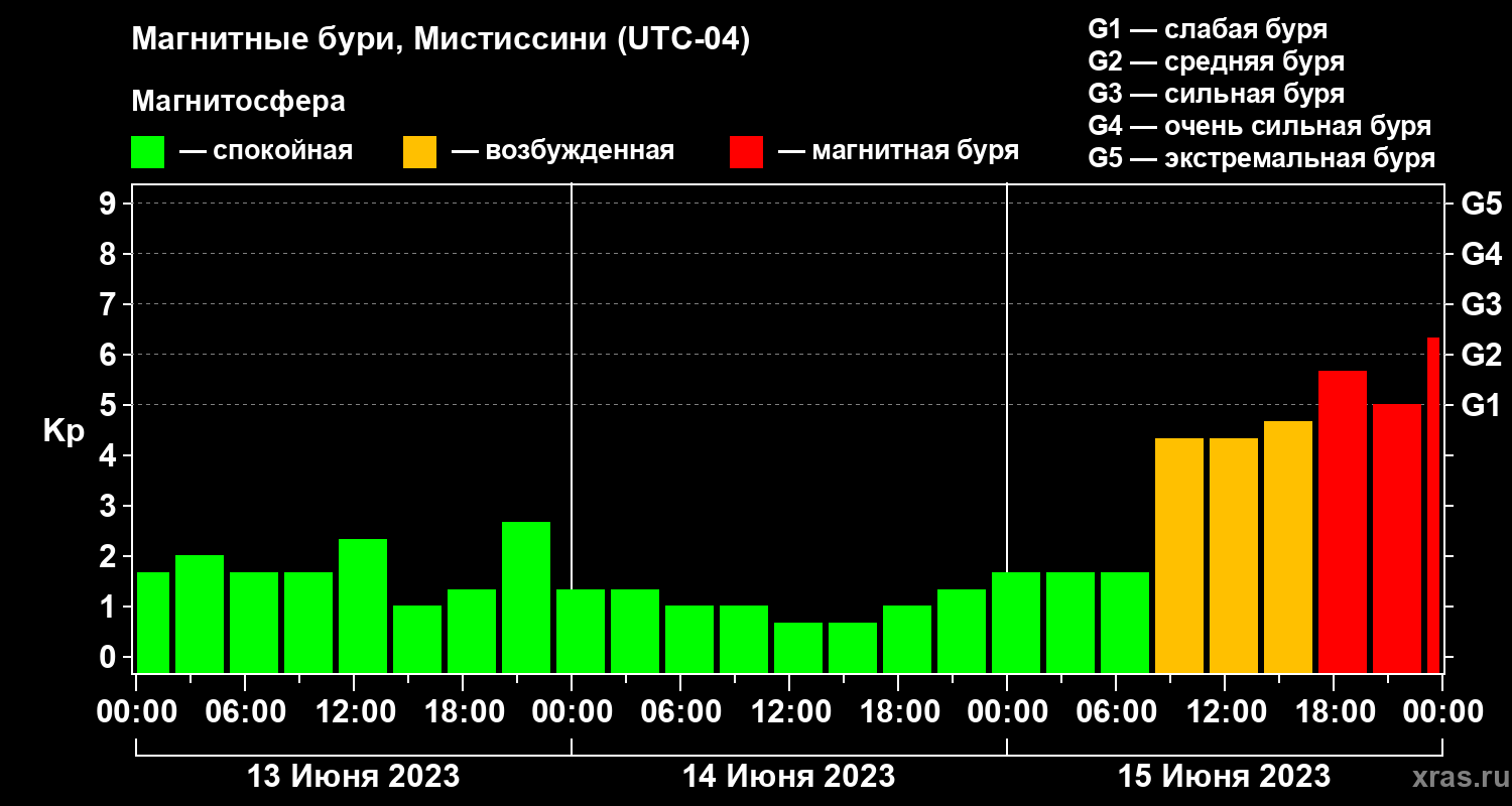 Магнитные бури Мистиссини 15 июня 2023 года