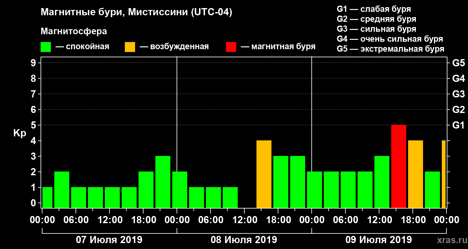 Магнитные бури Мистиссини — 9 июля 2019 года