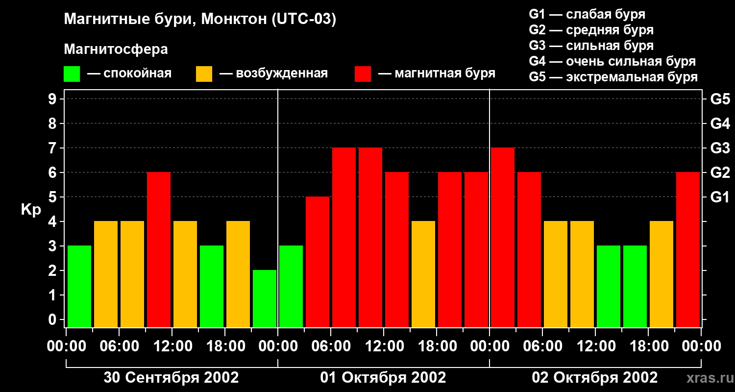 Магнитные бури в Монктоне — 2 октября 2002 года