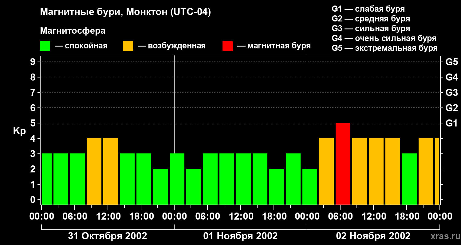 Магнитные бури в Монктоне 2 ноября 2002 года