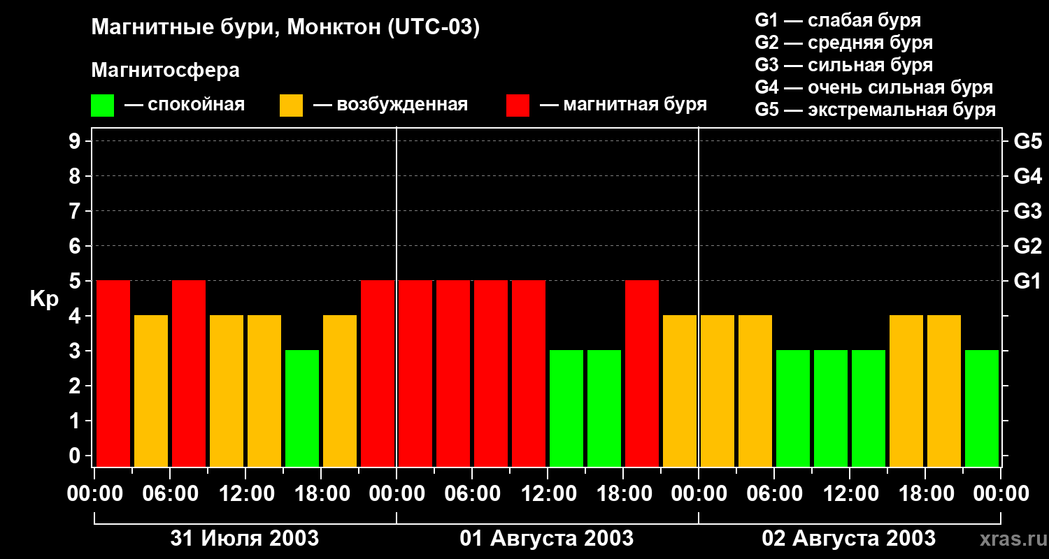 Магнитные бури в Монктоне — 2 августа 2003 года