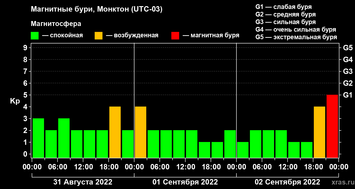 Магнитные бури в Монктоне — 2 сентября 2022 года