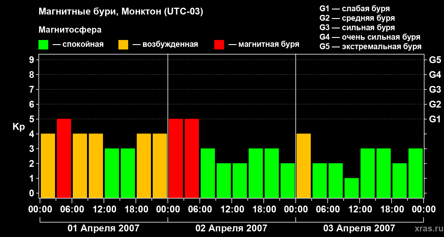 Магнитные бури в Монктоне — 3 апреля 2007 года