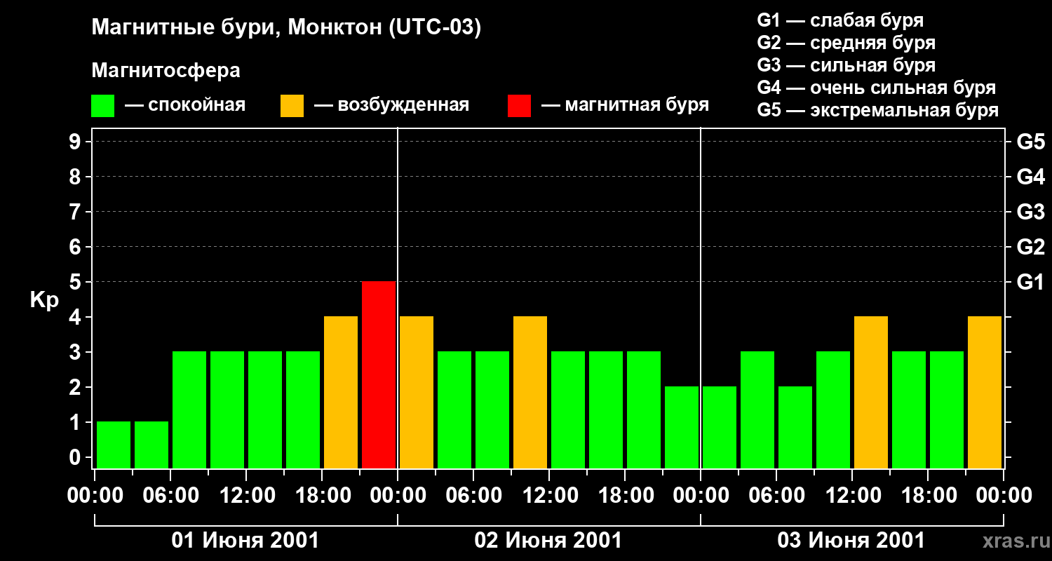 Магнитные бури в Монктоне — 3 июня 2001 года