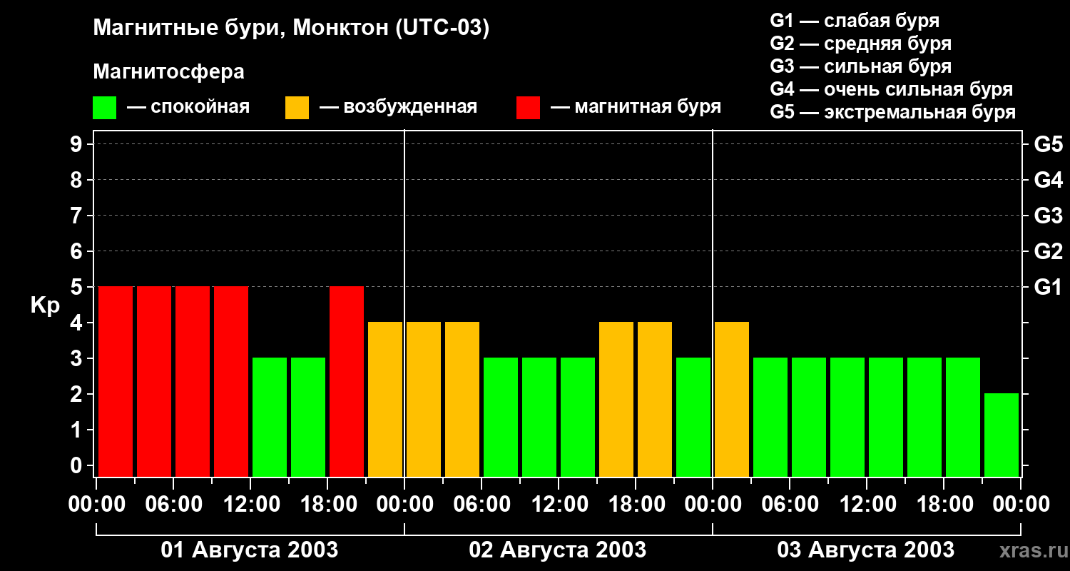 Магнитные бури в Монктоне — 3 августа 2003 года