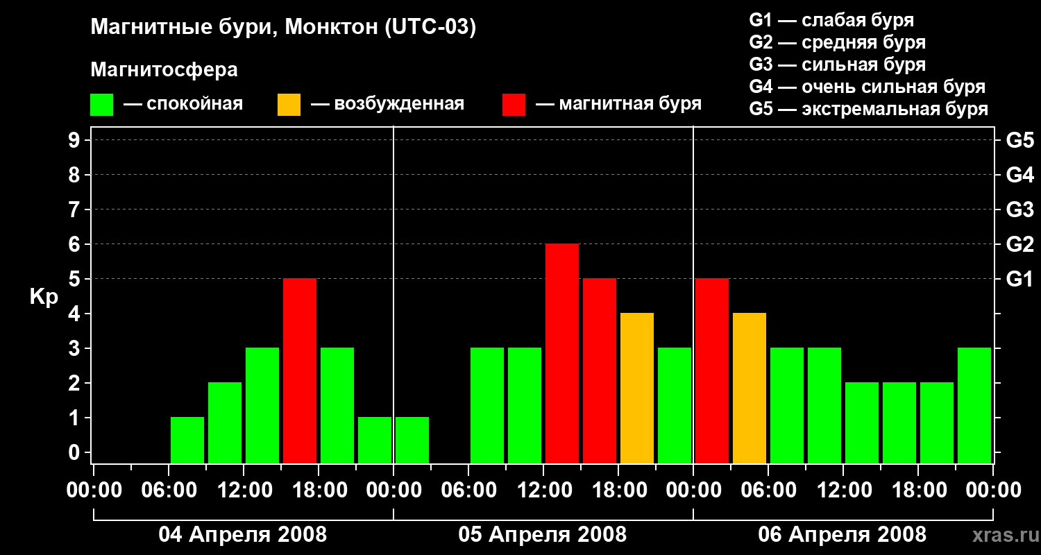 Магнитные бури в Монктоне — 6 апреля 2008 года