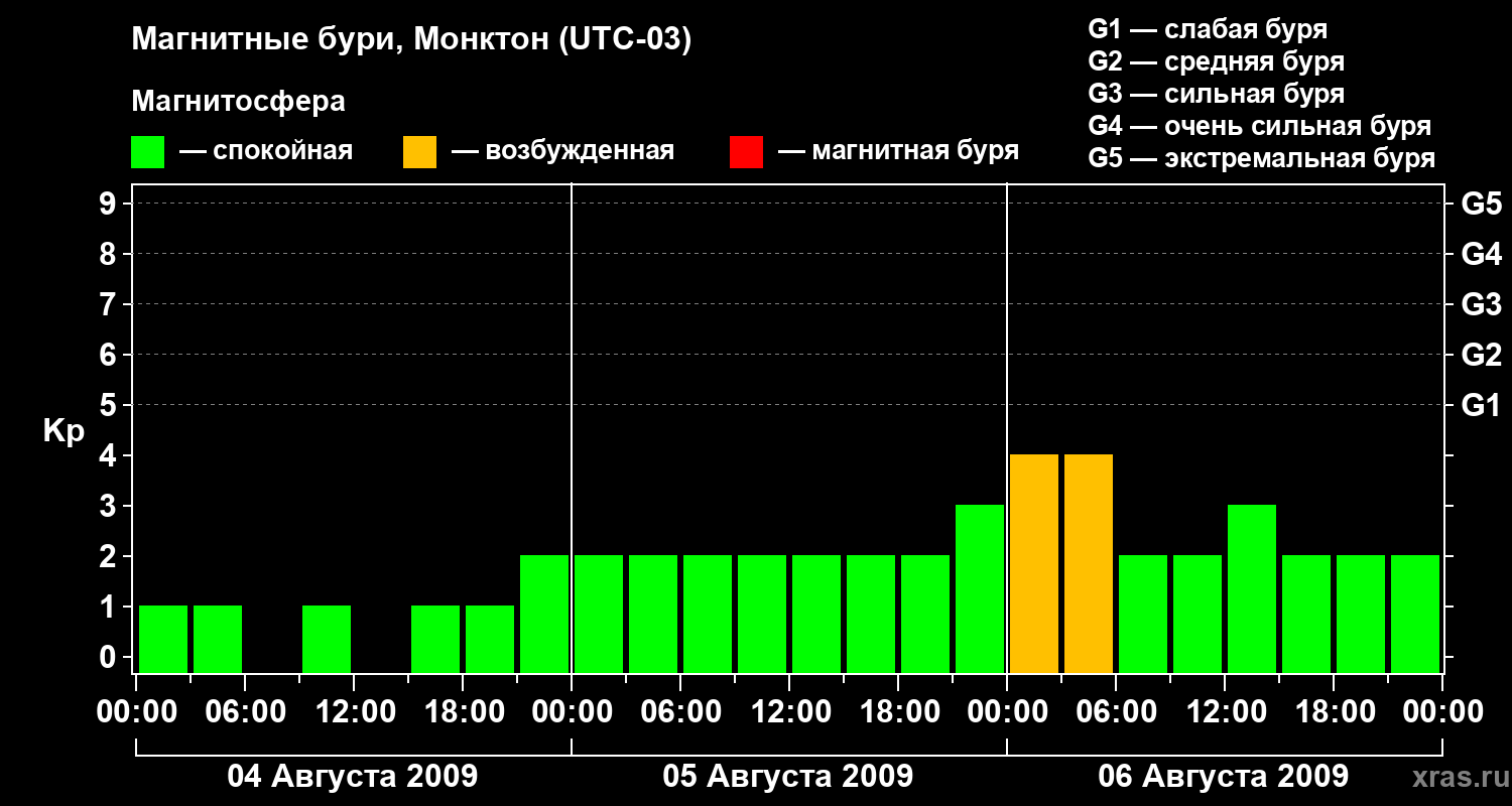 Магнитные бури в Монктоне — 6 августа 2009 года