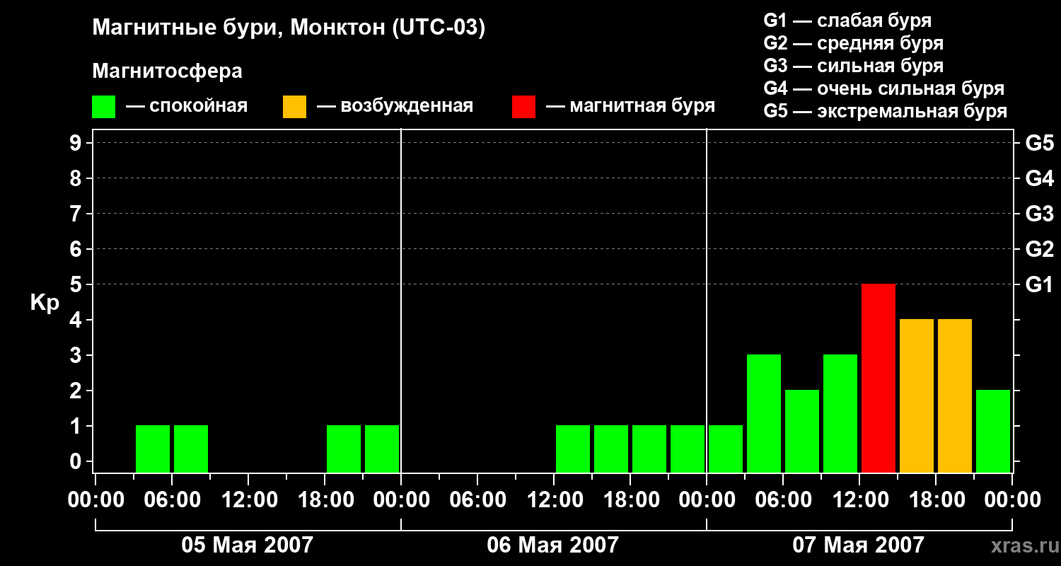 Магнитные бури в Монктоне — 7 мая 2007 года