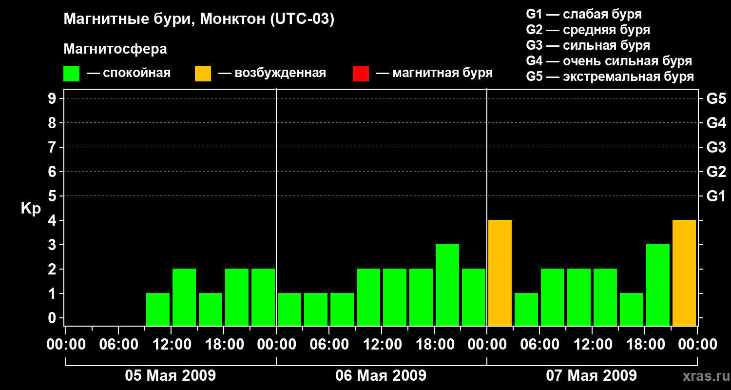 Магнитные бури в Монктоне — 7 мая 2009 года