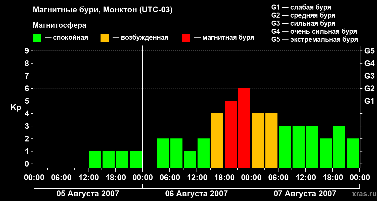 Магнитные бури в Монктоне — 7 августа 2007 года