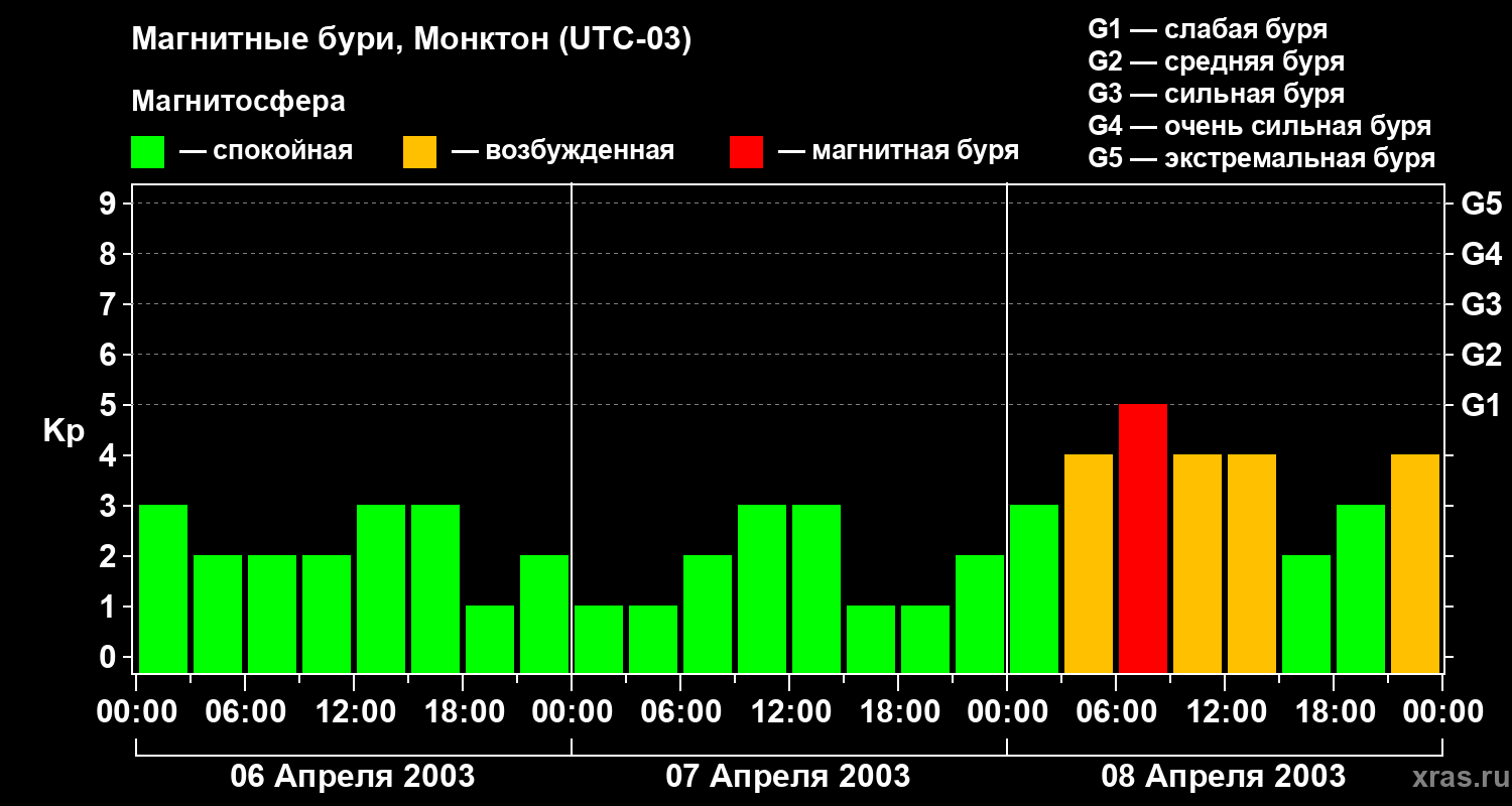 Магнитные бури в Монктоне — 8 апреля 2003 года