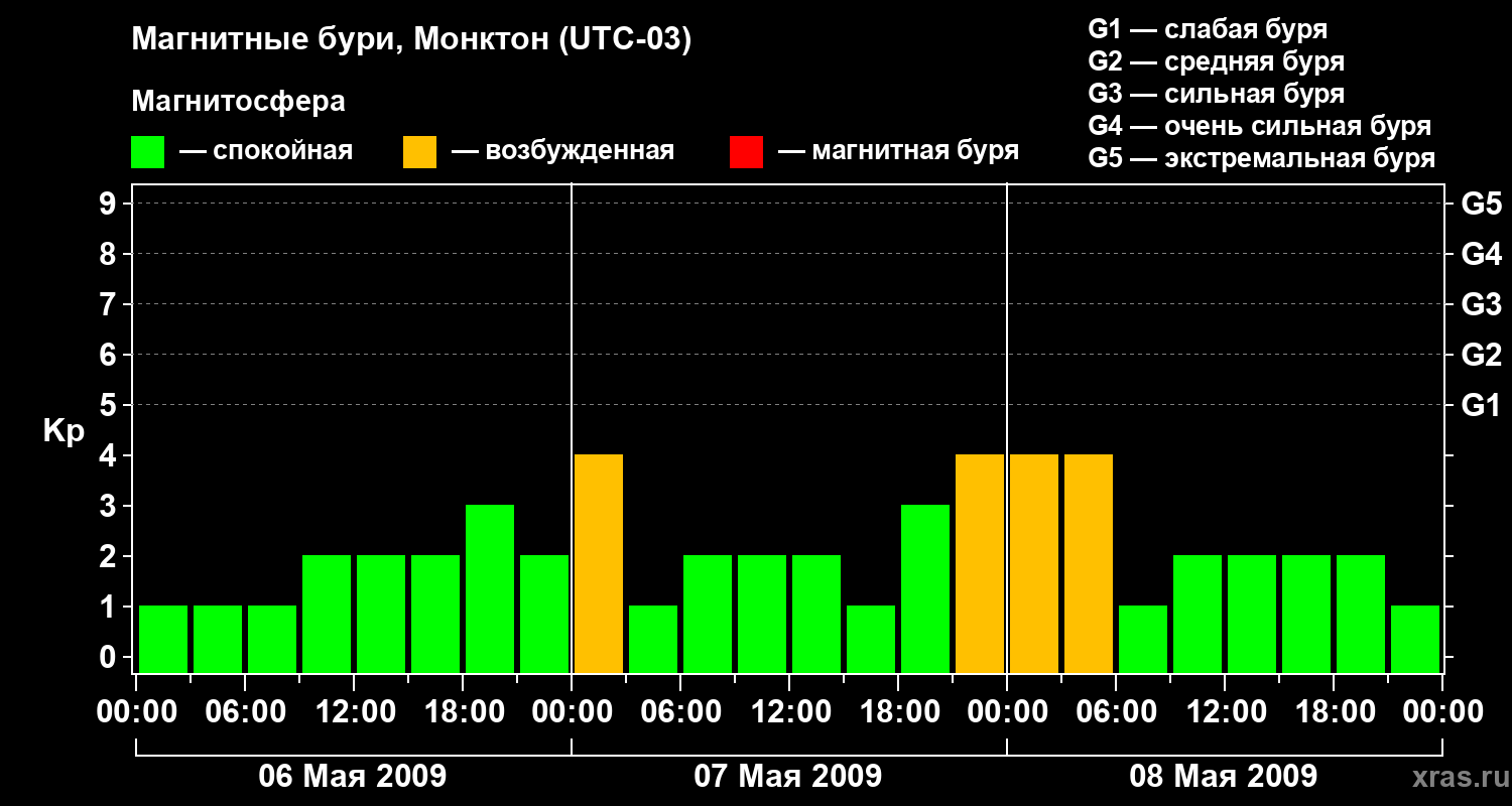 Магнитные бури в Монктоне — 8 мая 2009 года