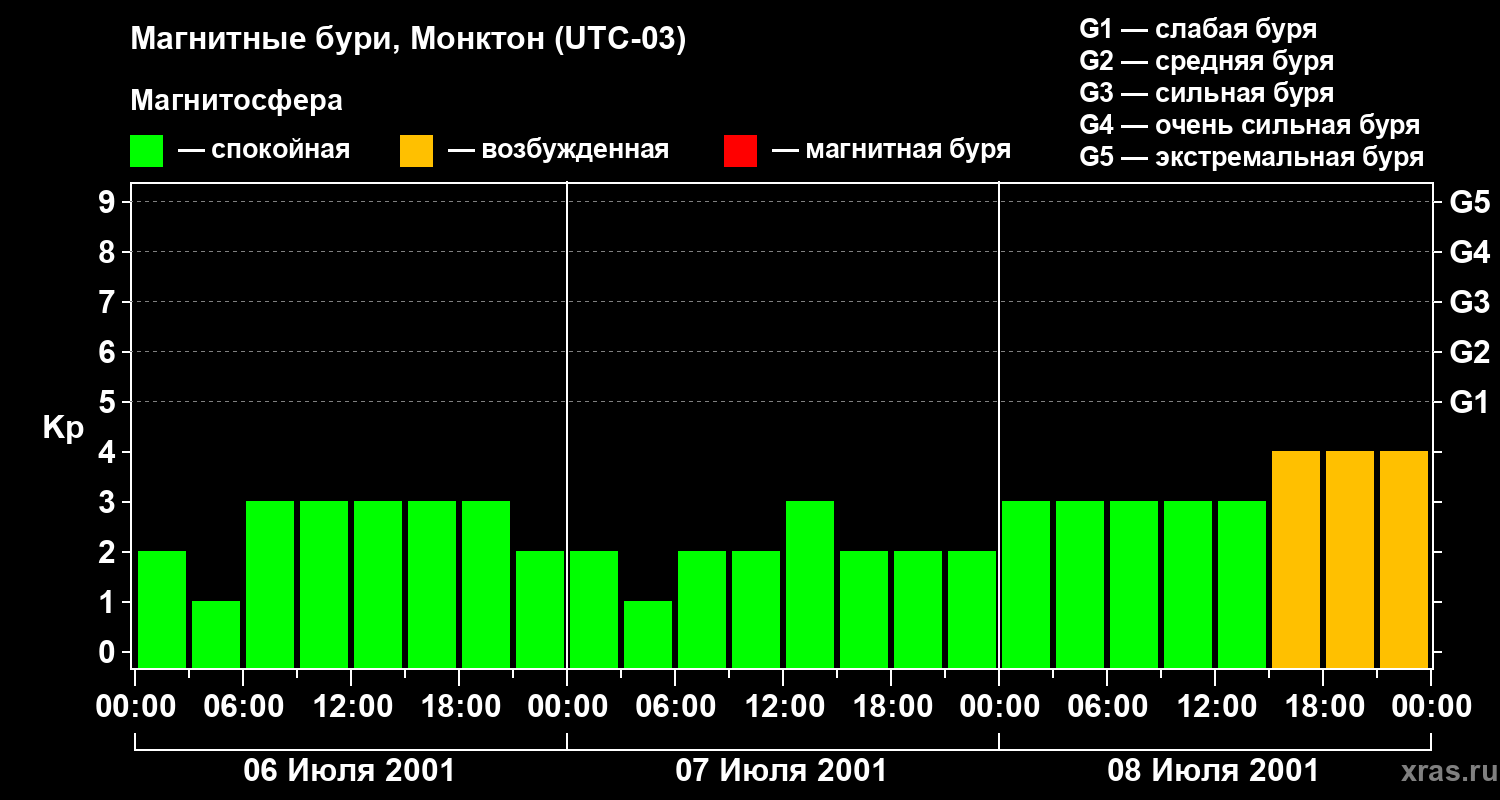 Магнитные бури в Монктоне 8 июля 2001 года