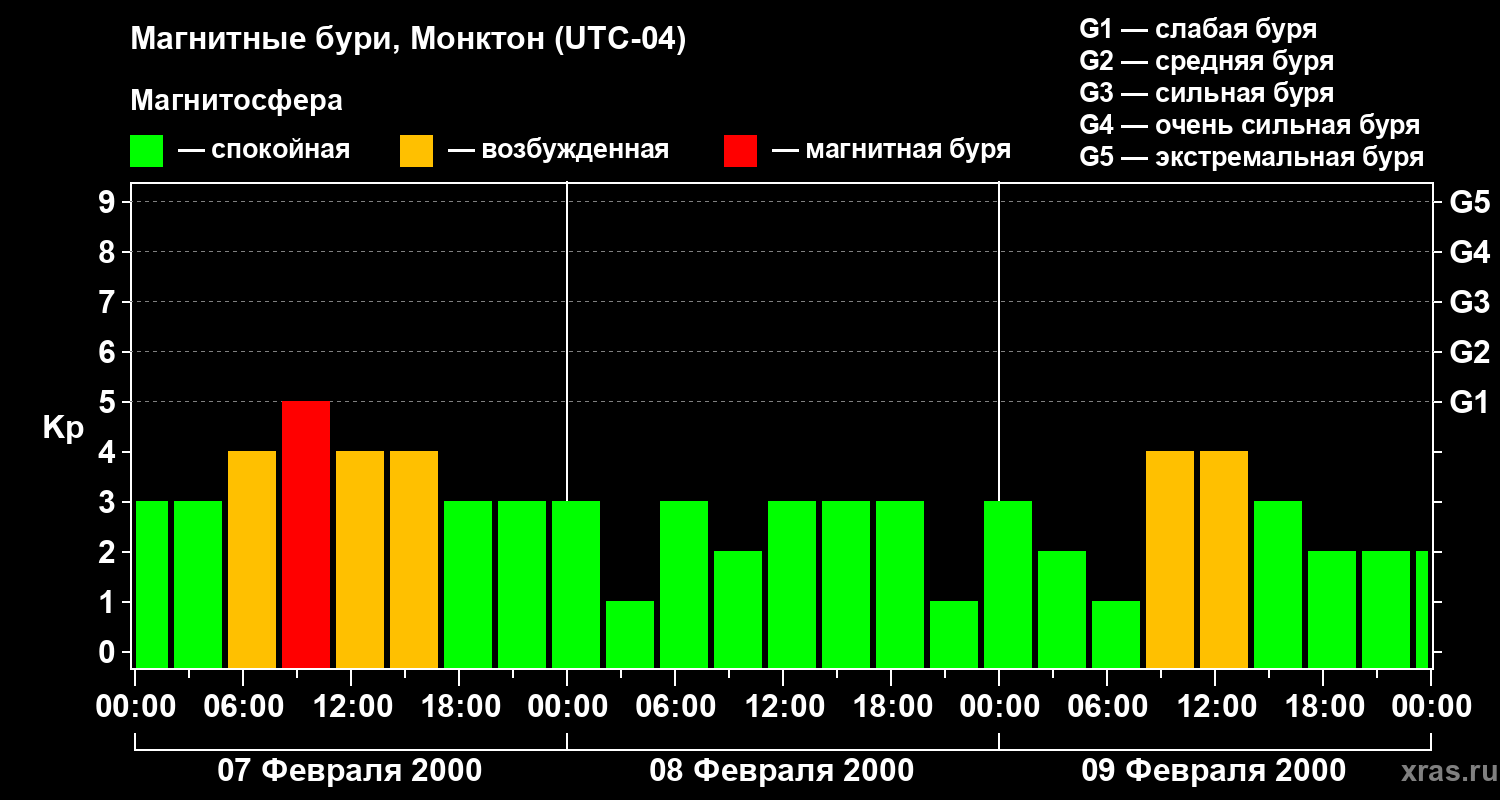 Магнитные бури в Монктоне — 9 февраля 2000 года
