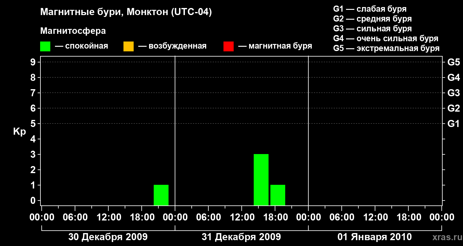 Магнитные бури в Монктоне — 1 января 2010 года