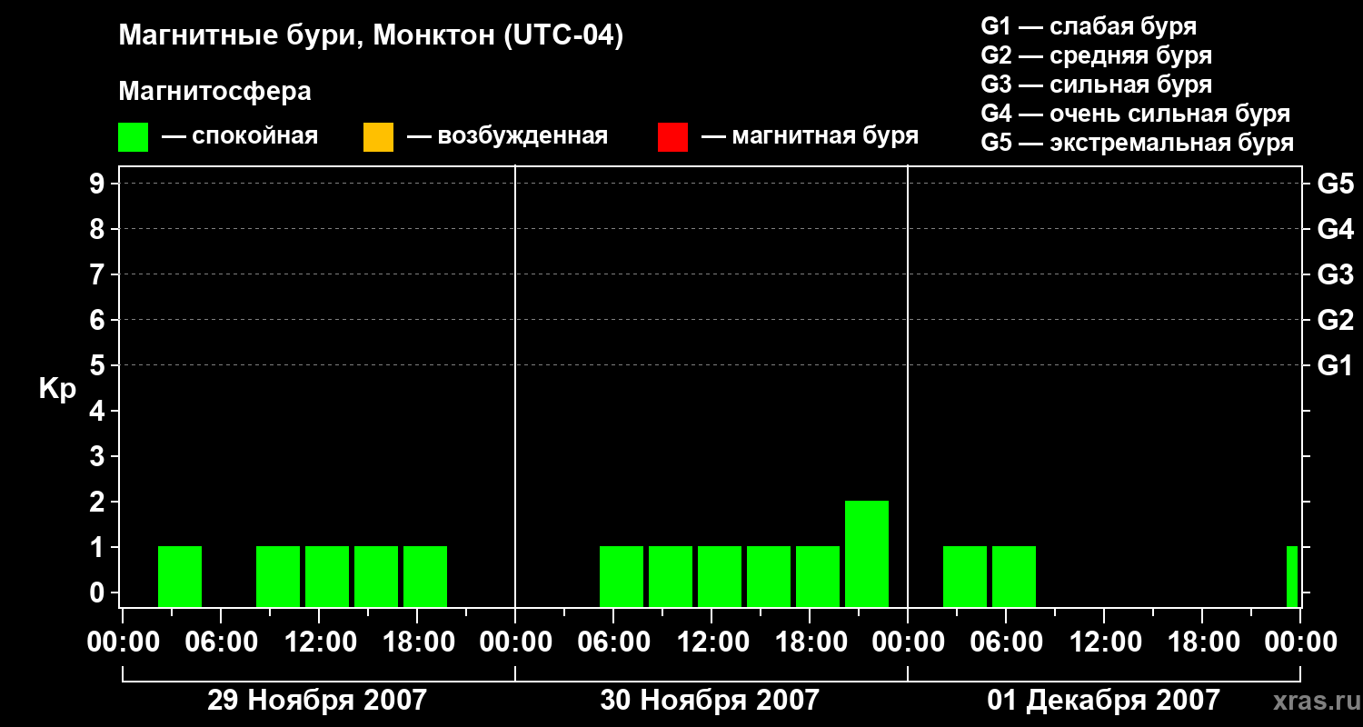 Магнитные бури в Монктоне — 1 декабря 2007 года