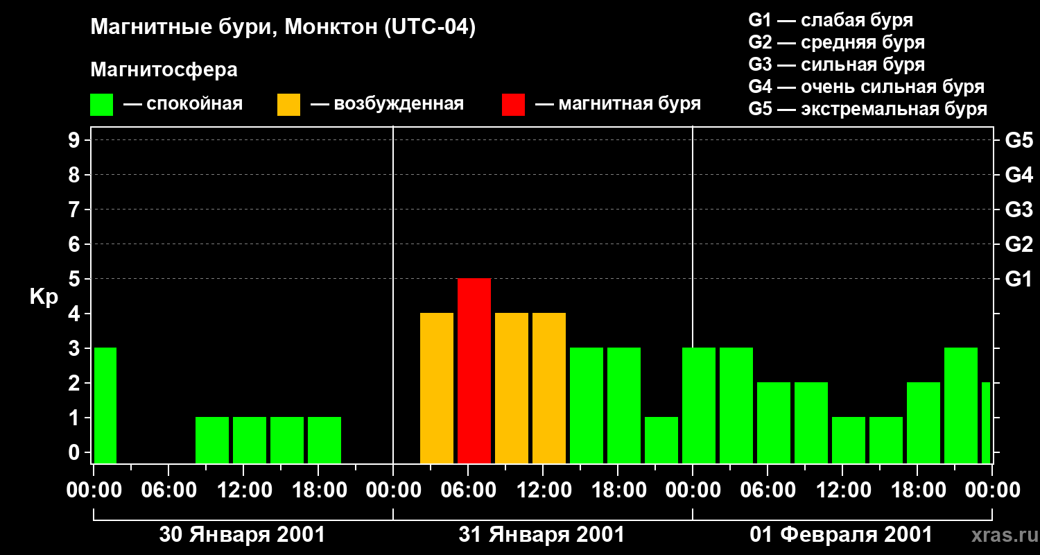 Магнитные бури в Монктоне — 1 февраля 2001 года