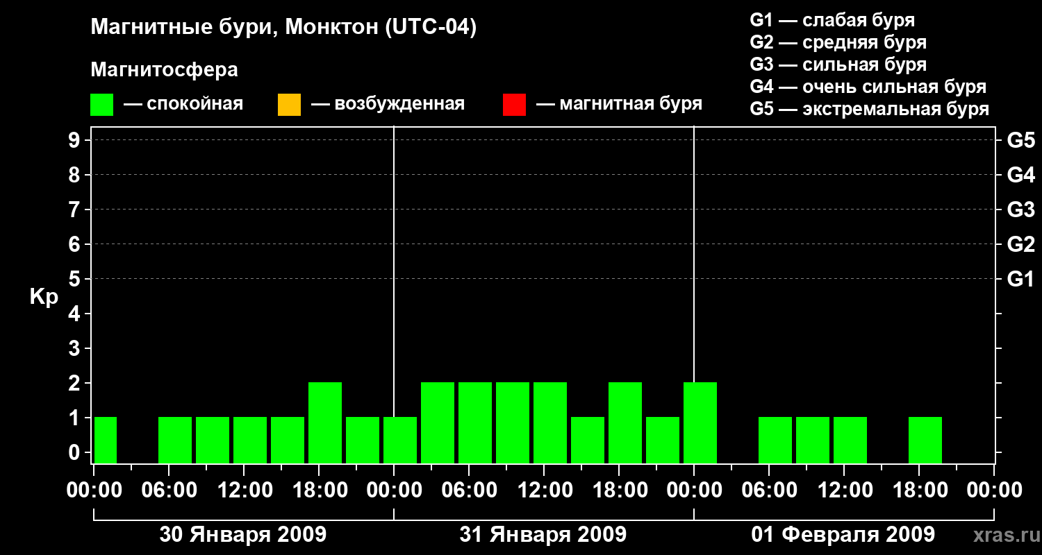 Магнитные бури в Монктоне — 1 февраля 2009 года