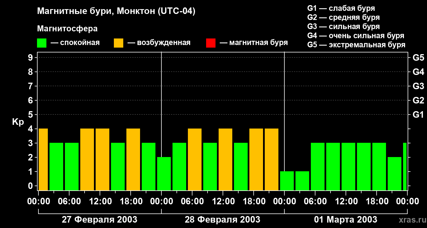 Магнитные бури в Монктоне — 1 марта 2003 года
