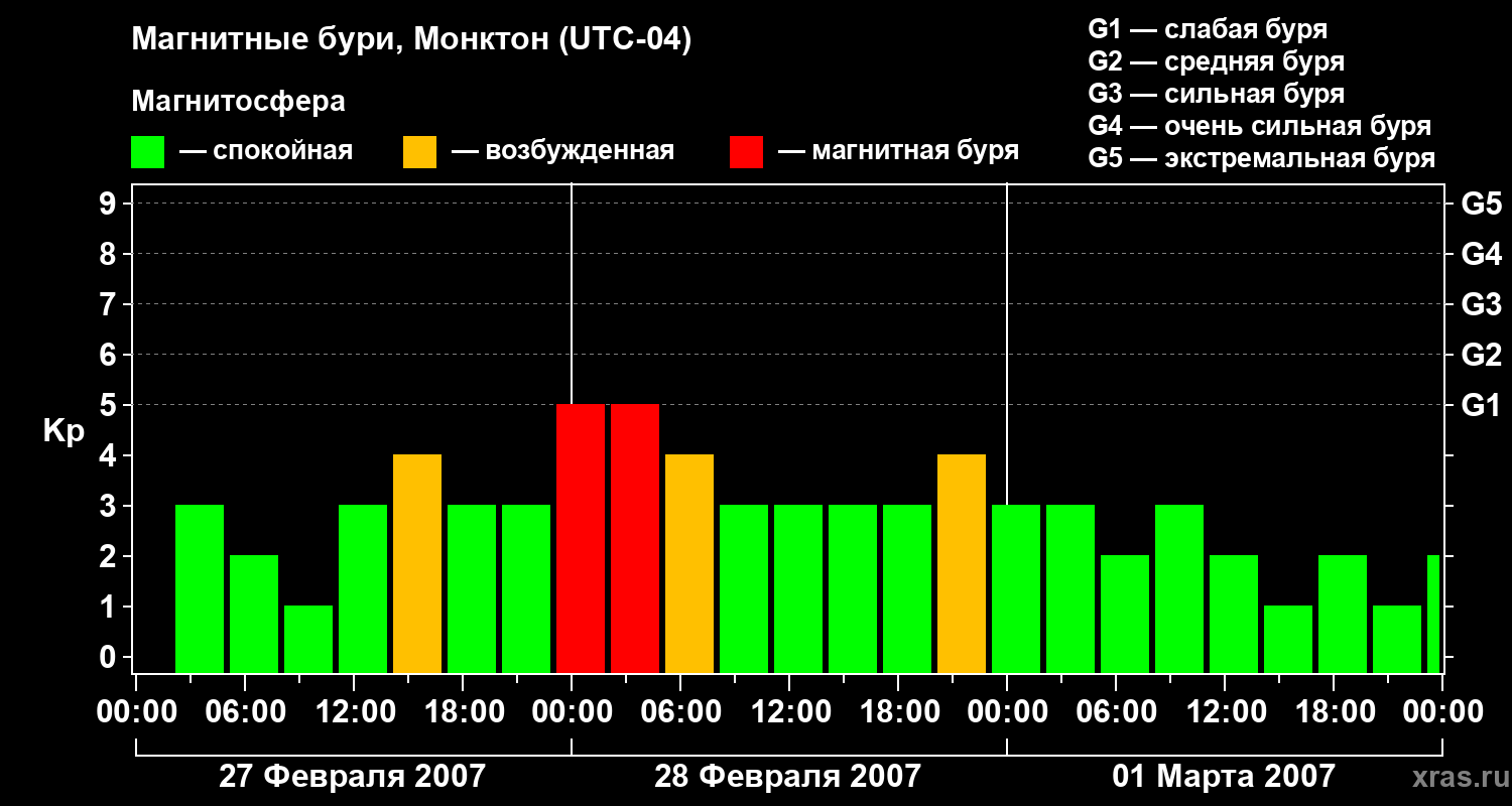 Магнитные бури в Монктоне — 1 марта 2007 года