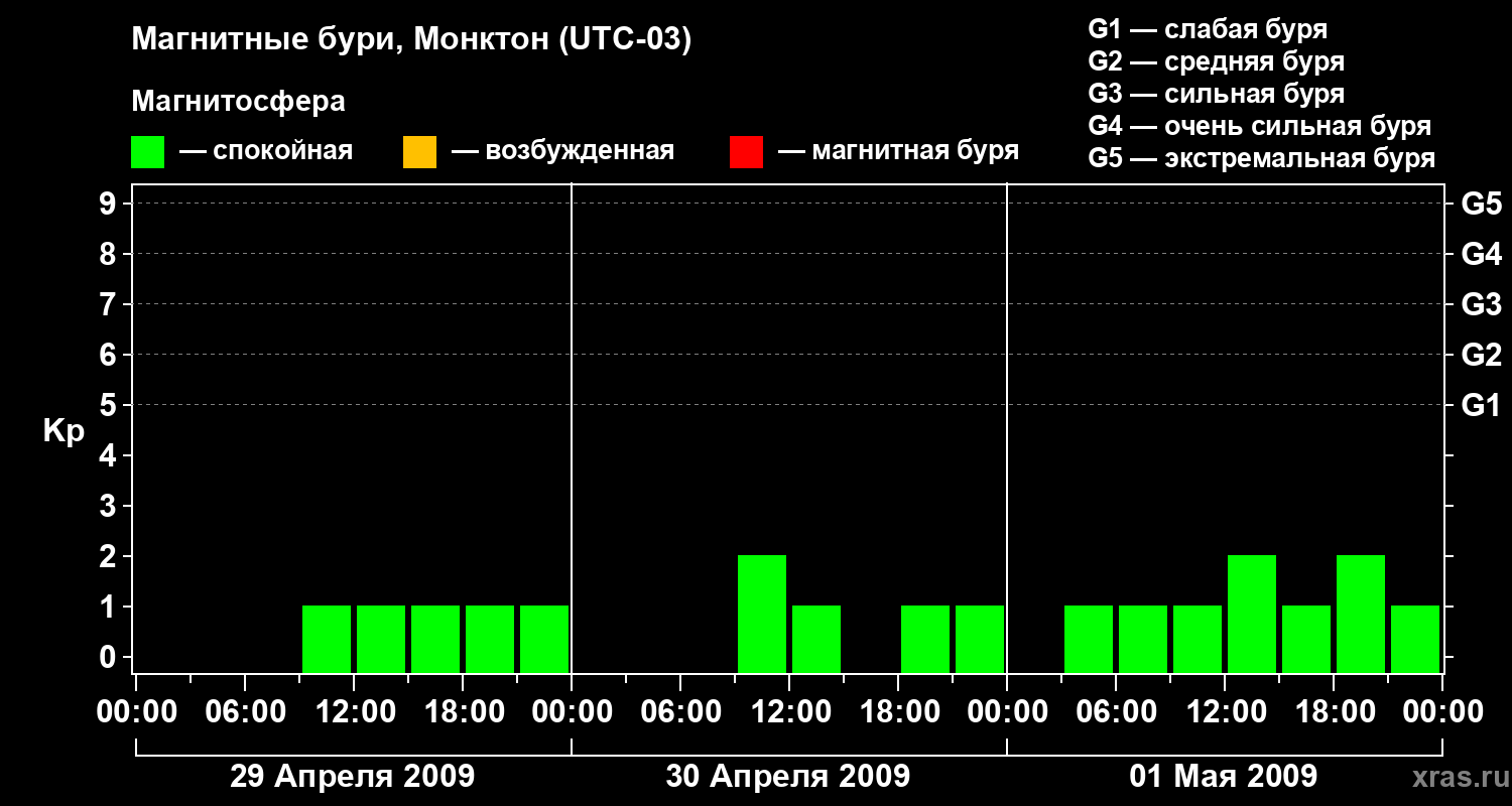Магнитные бури в Монктоне — 1 мая 2009 года