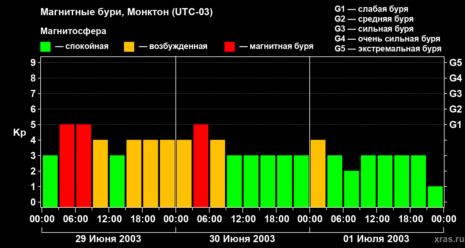 Магнитные бури в Монктоне — 1 июля 2003 года