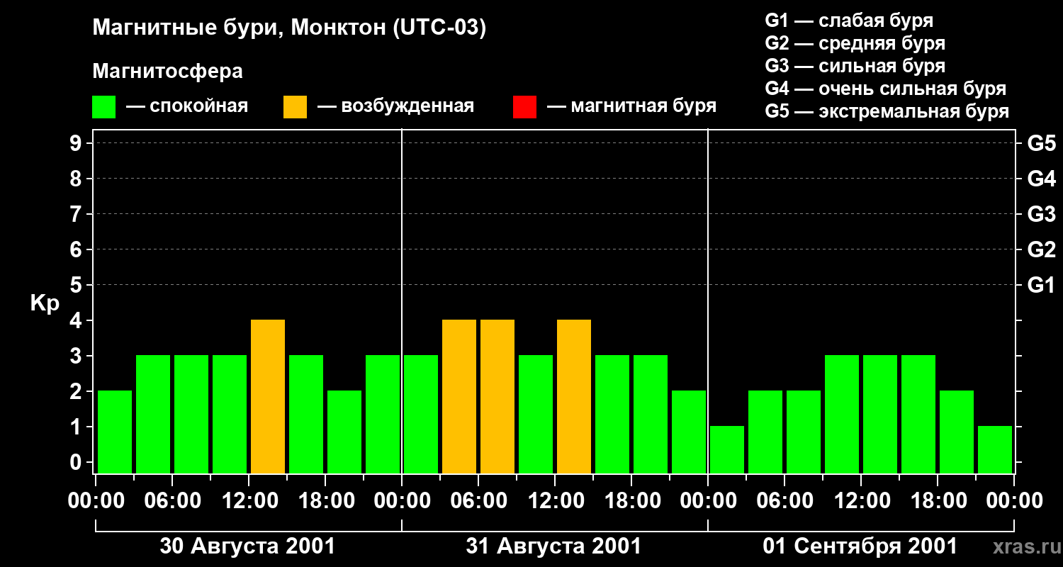 Магнитные бури в Монктоне — 1 сентября 2001 года
