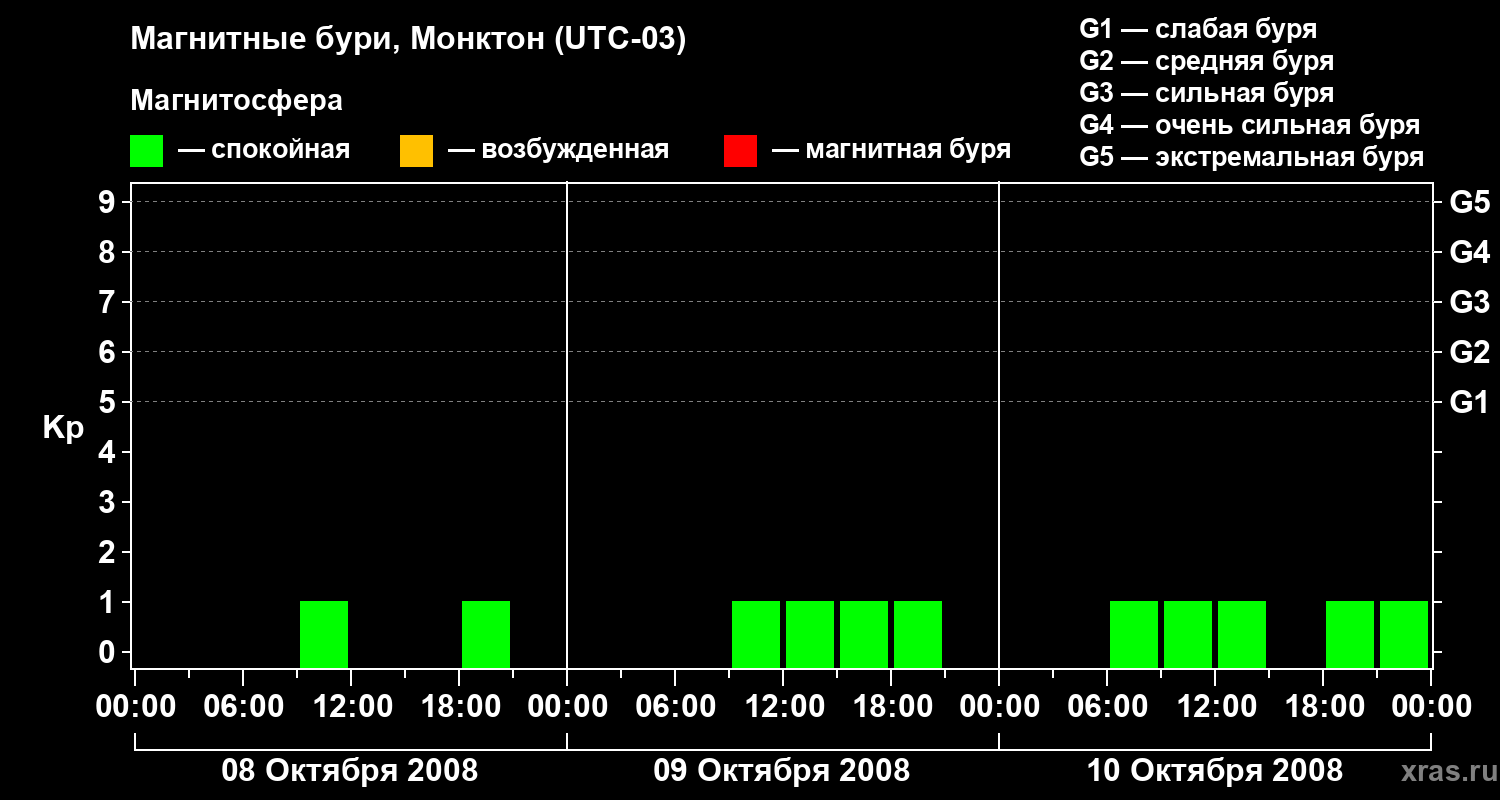 Магнитные бури в Монктоне — 10 октября 2008 года