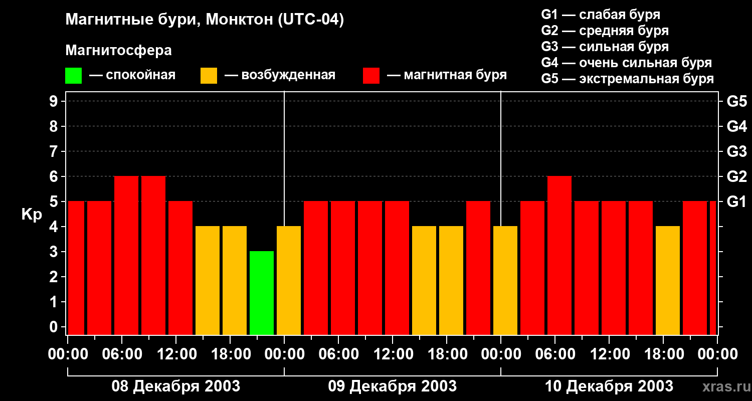 Магнитные бури в Монктоне — 10 декабря 2003 года