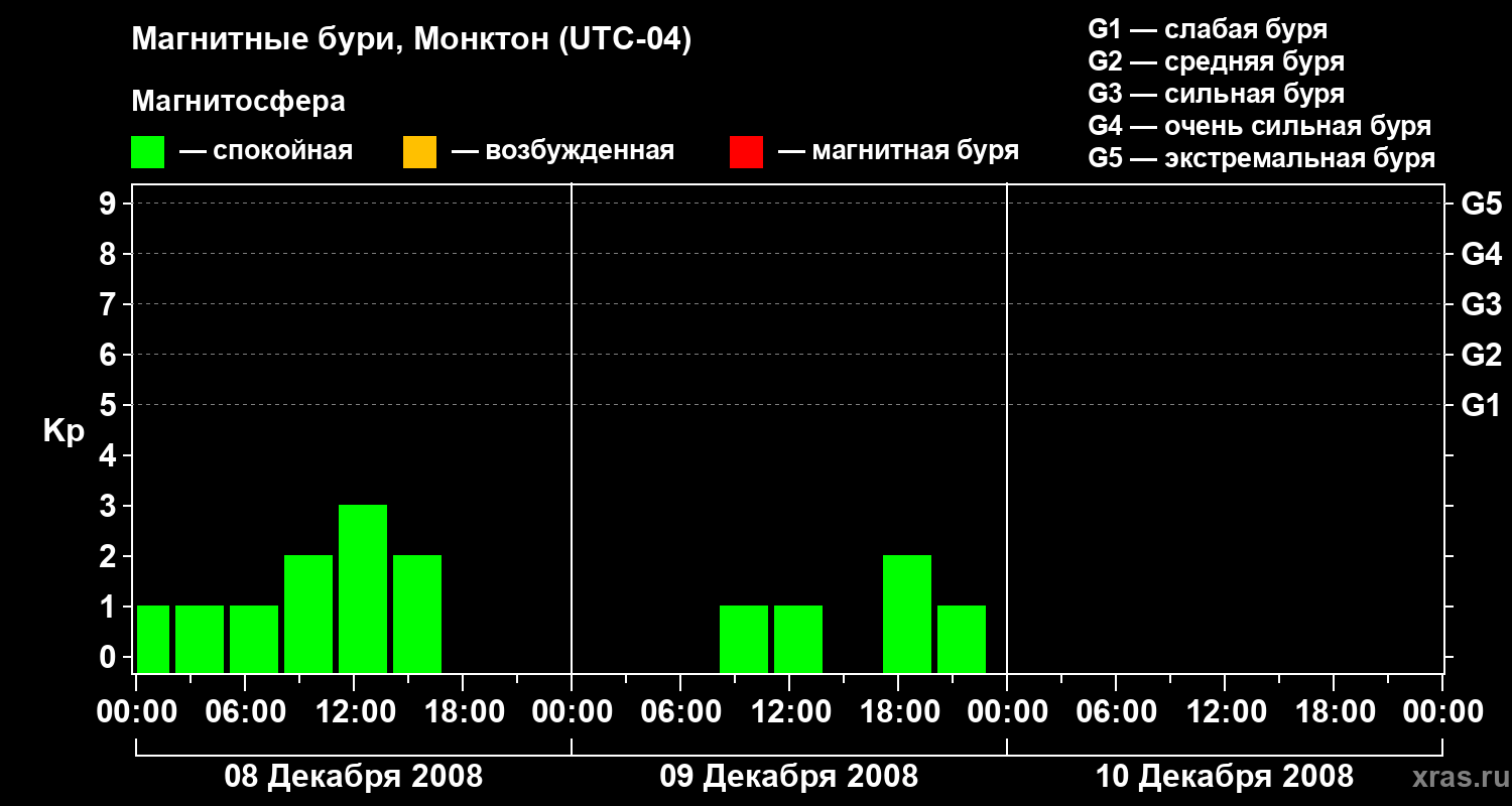 Магнитные бури в Монктоне — 10 декабря 2008 года