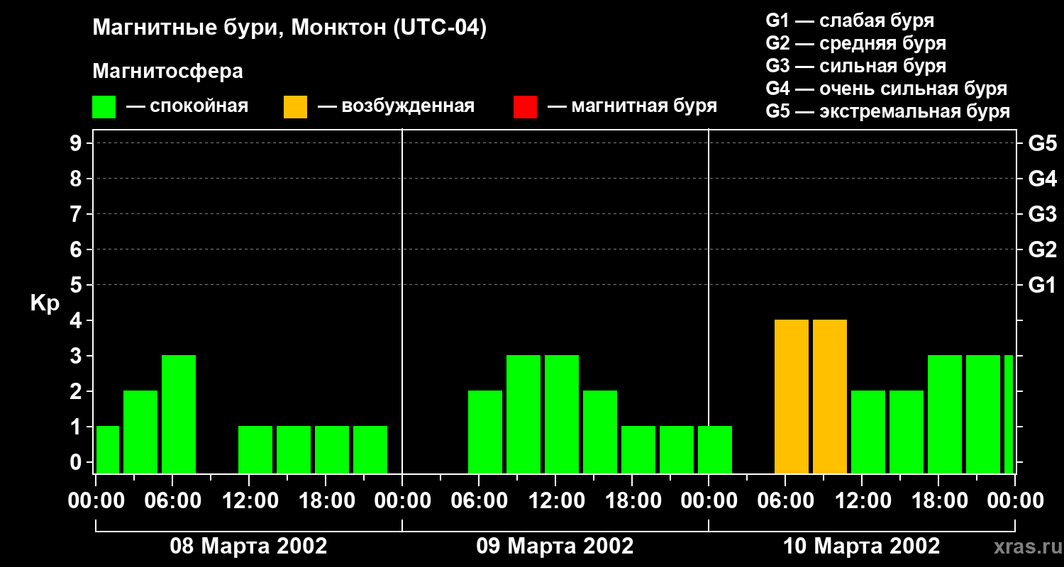 Магнитные бури в Монктоне — 10 марта 2002 года