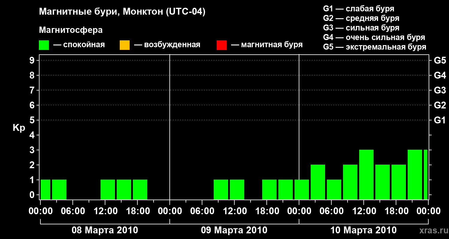 Магнитные бури в Монктоне — 10 марта 2010 года