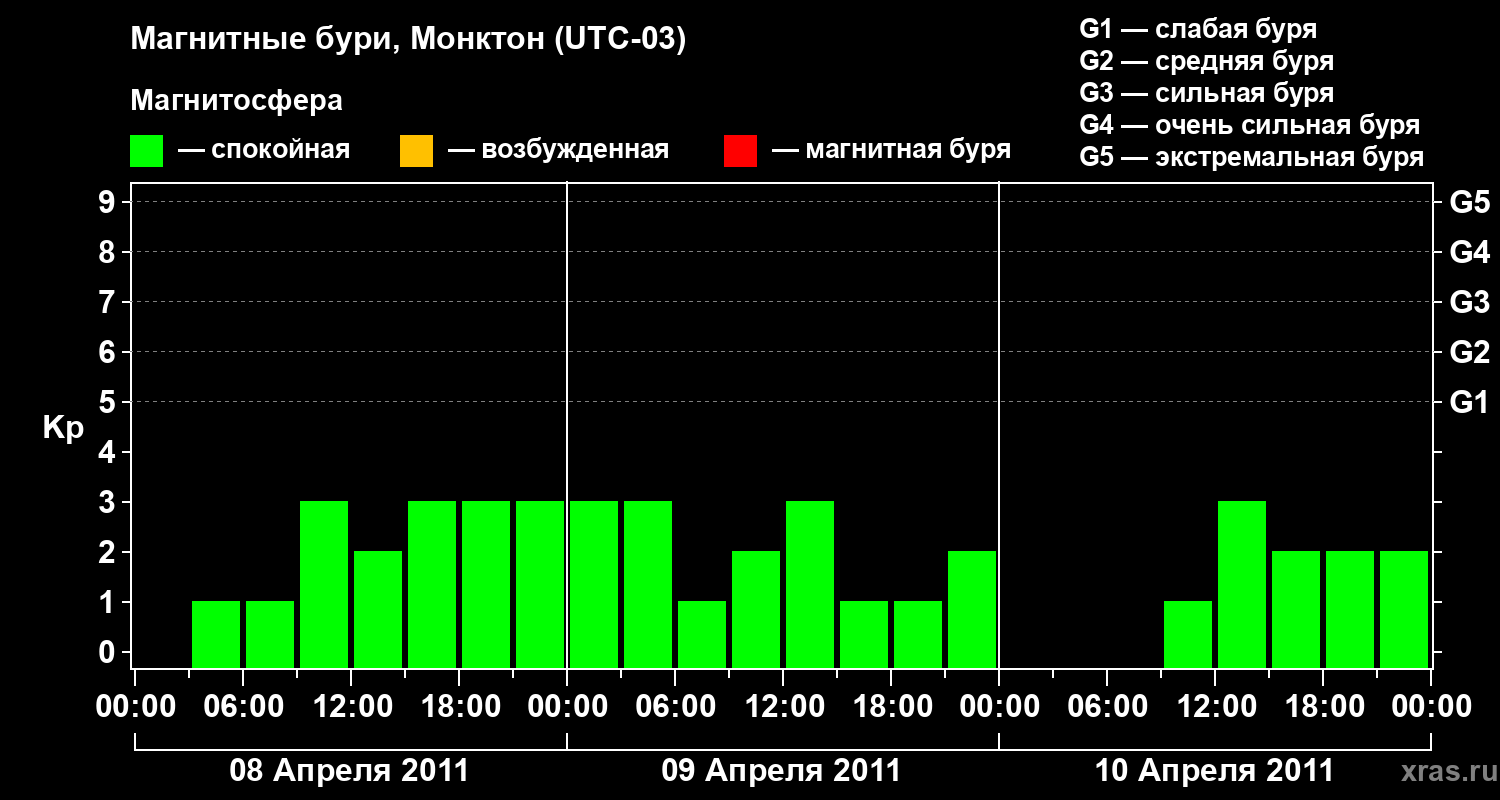 Магнитные бури в Монктоне — 10 апреля 2011 года