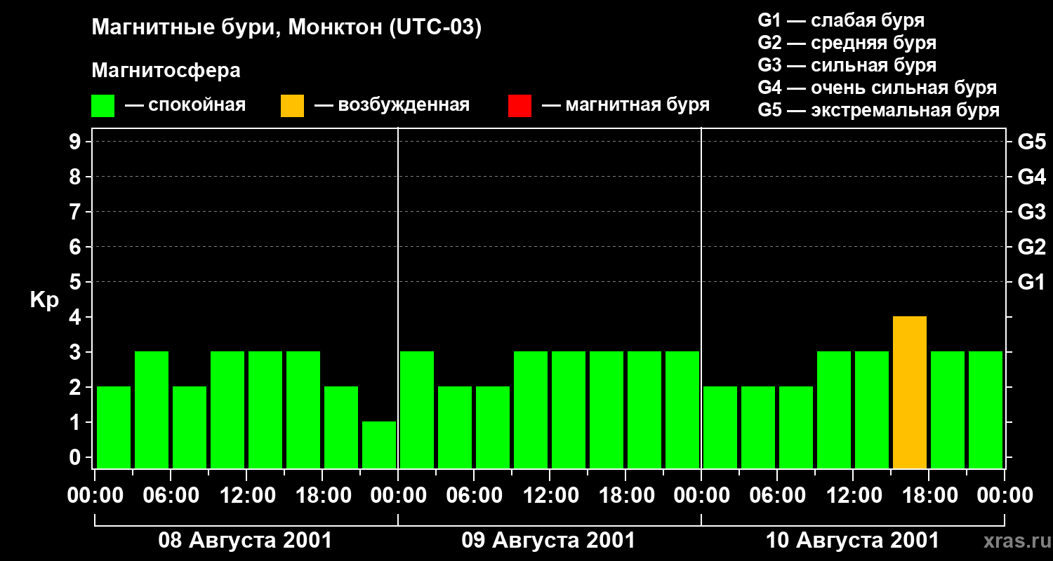 Магнитные бури в Монктоне — 10 августа 2001 года