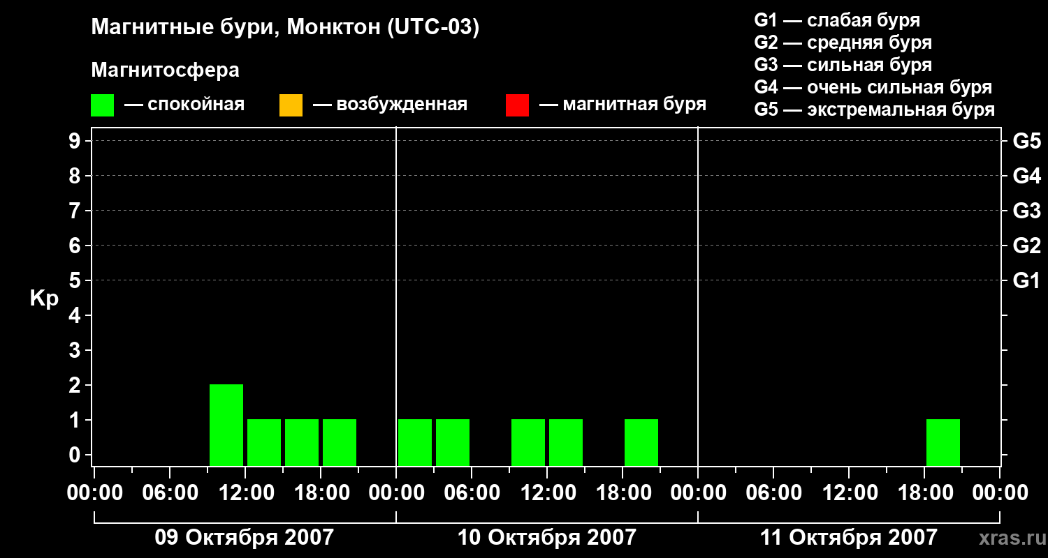 Магнитные бури в Монктоне — 11 октября 2007 года