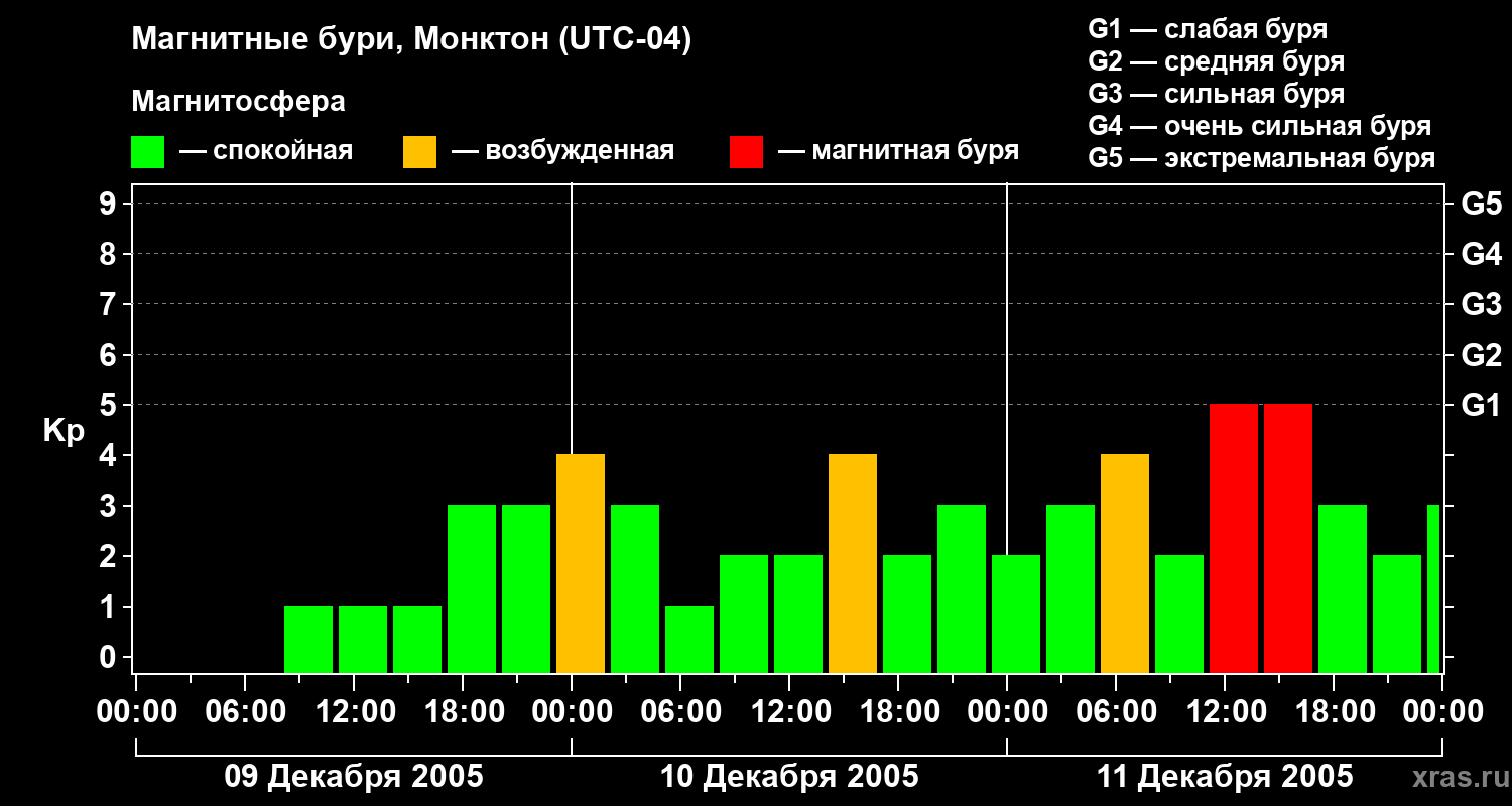 Магнитные бури в Монктоне 11 декабря 2005 года