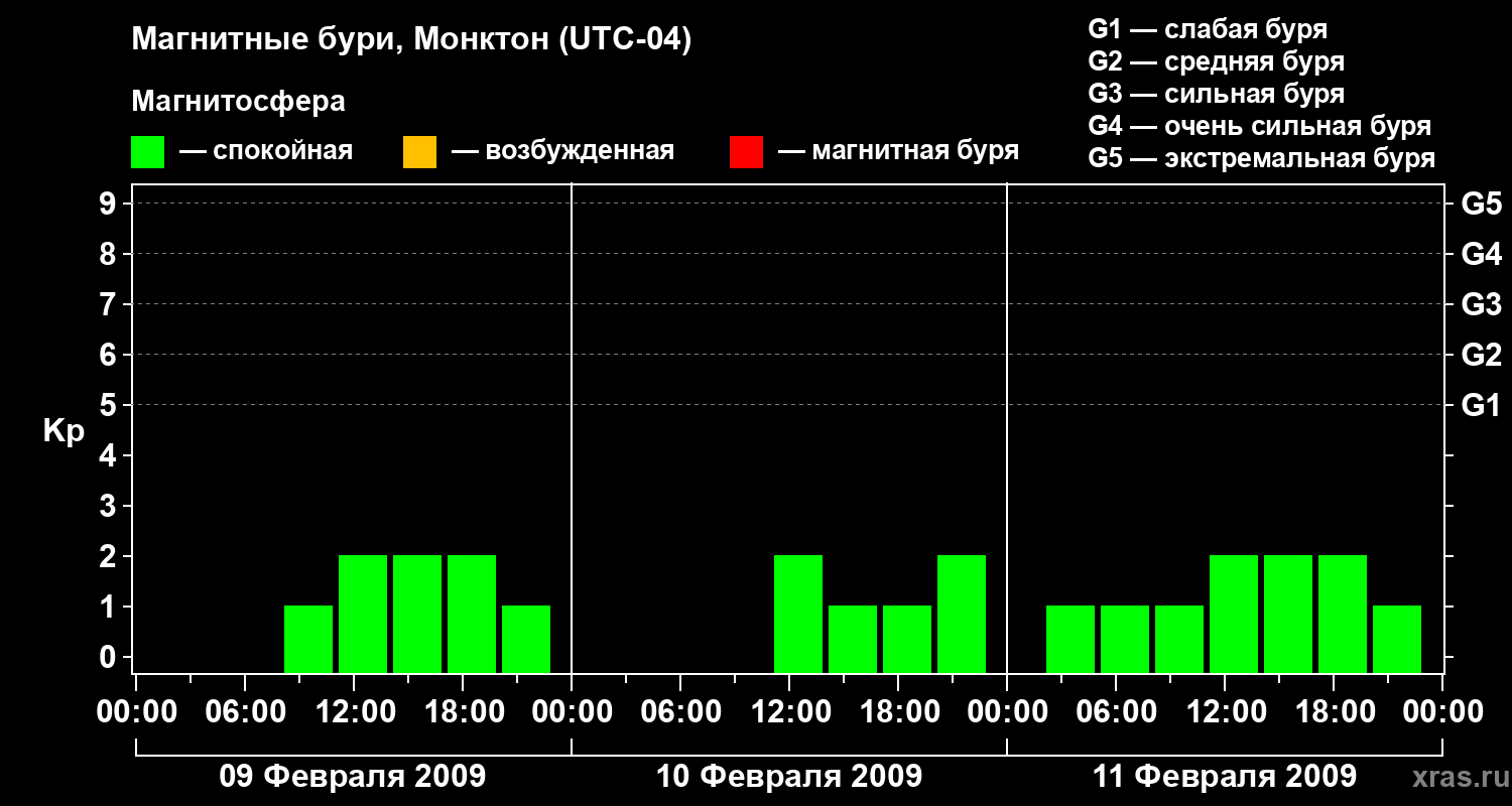 Магнитные бури в Монктоне — 11 февраля 2009 года