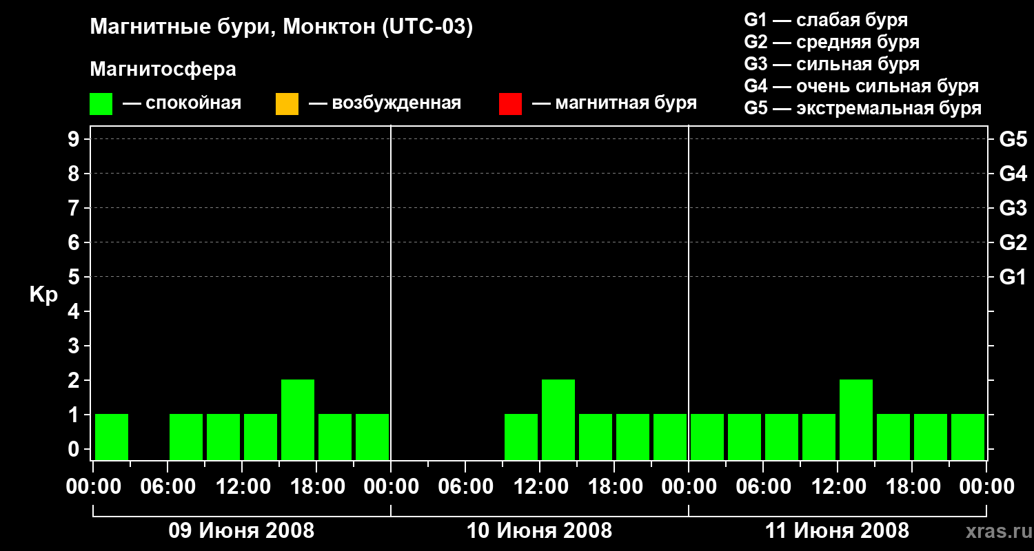 Магнитные бури в Монктоне — 11 июня 2008 года