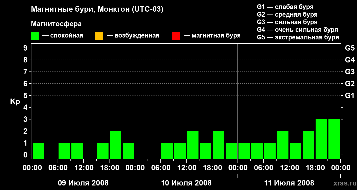 Магнитные бури в Монктоне — 11 июля 2008 года