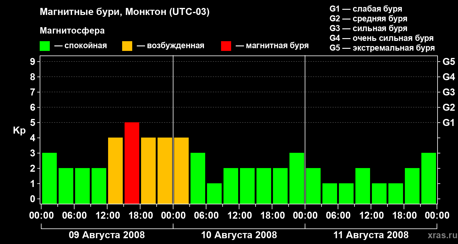 Магнитные бури в Монктоне — 11 августа 2008 года