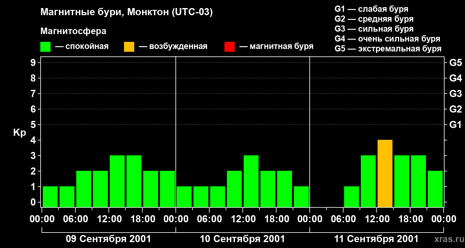 Магнитные бури в Монктоне — 11 сентября 2001 года