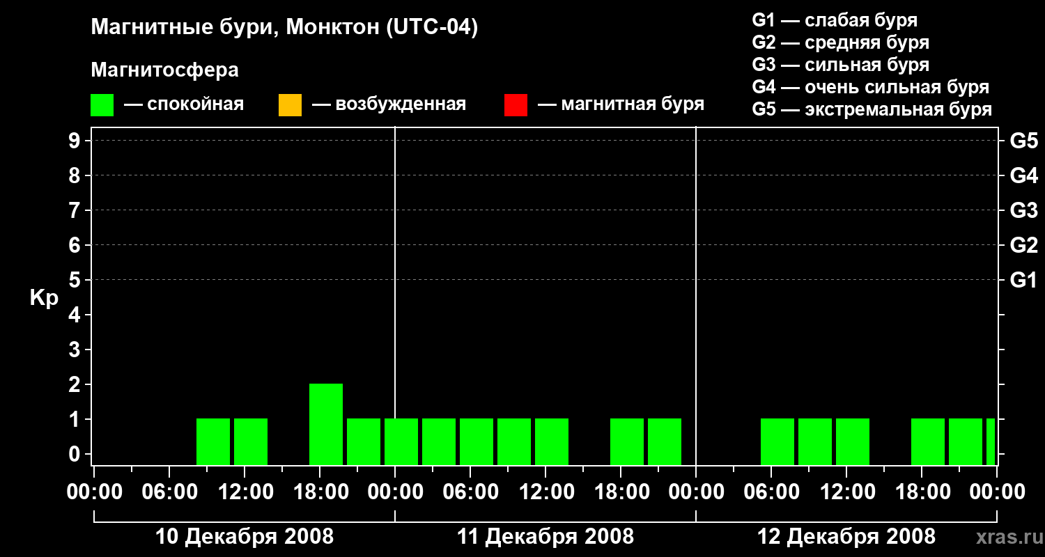 Магнитные бури в Монктоне — 12 декабря 2008 года