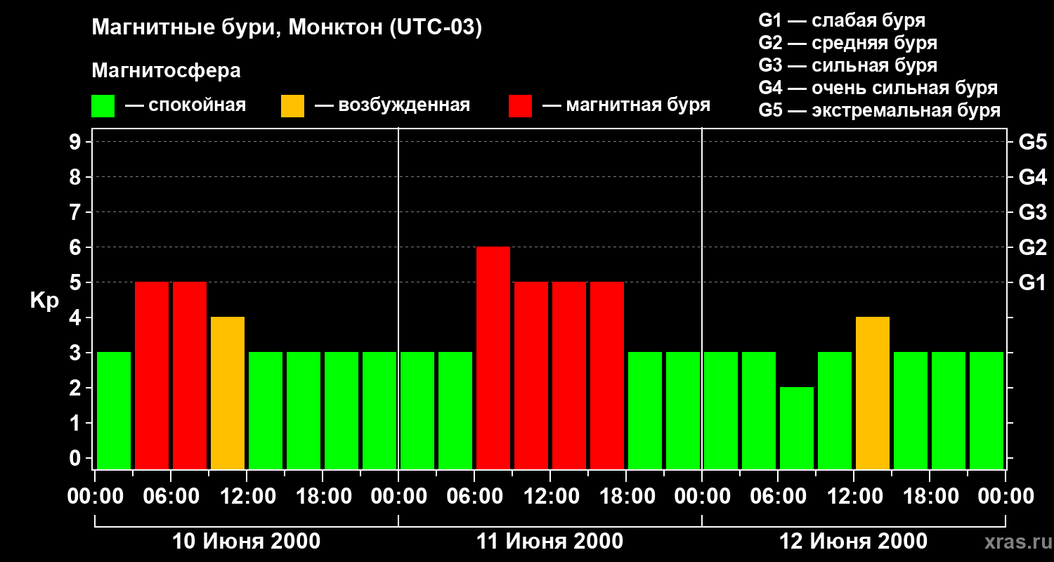 Магнитные бури в Монктоне 12 июня 2000 года