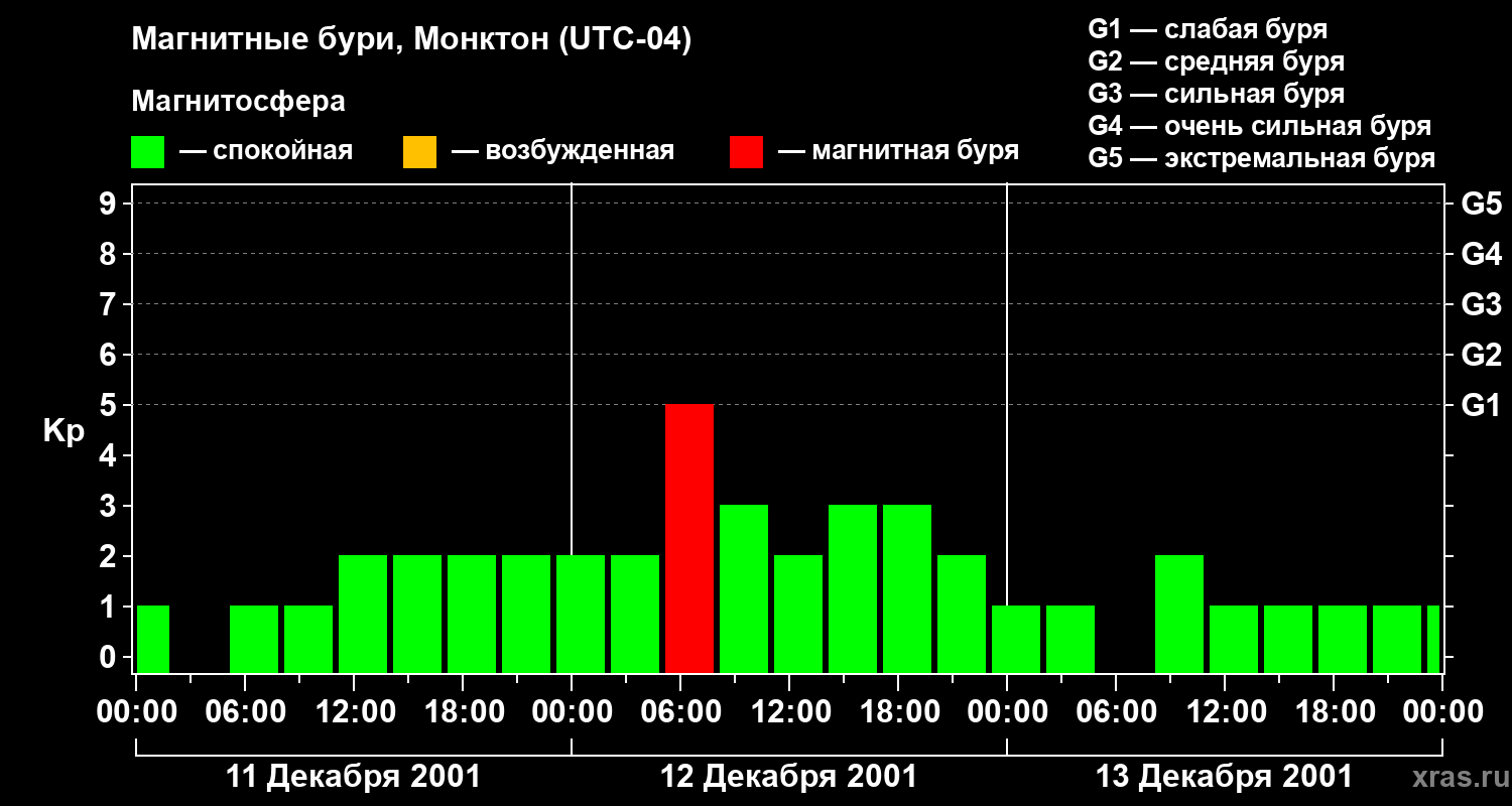 Магнитные бури в Монктоне — 13 декабря 2001 года